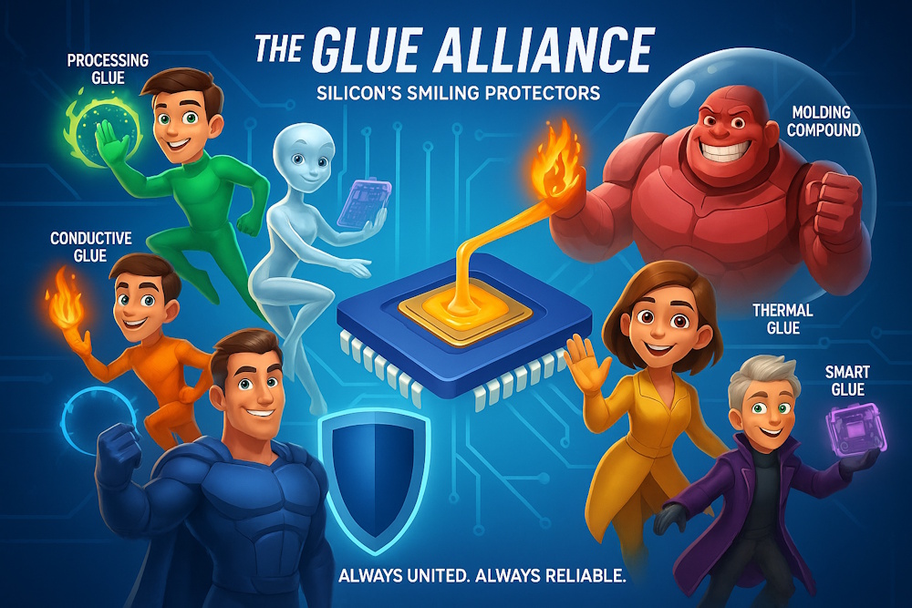 Each glue has its own unique ability, and no single one could do it alone. But together, they ensure the chip safely completes its evolution, becoming the core that powers modern life.